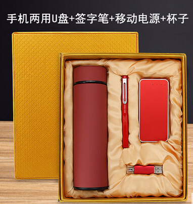 套装规格: 保温杯 移动电源 签字笔 8GU盘(可根据需求容量)